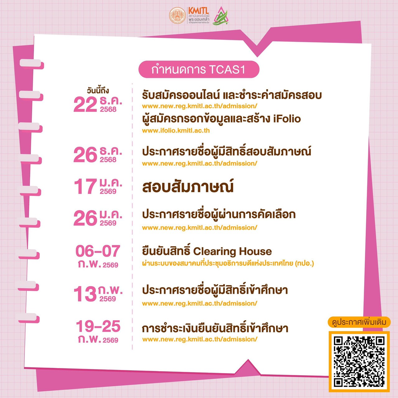รอบ TCAS1 (Portfolio) ตั้งแต่วันนี้ – 22 ธันวาคม 2568