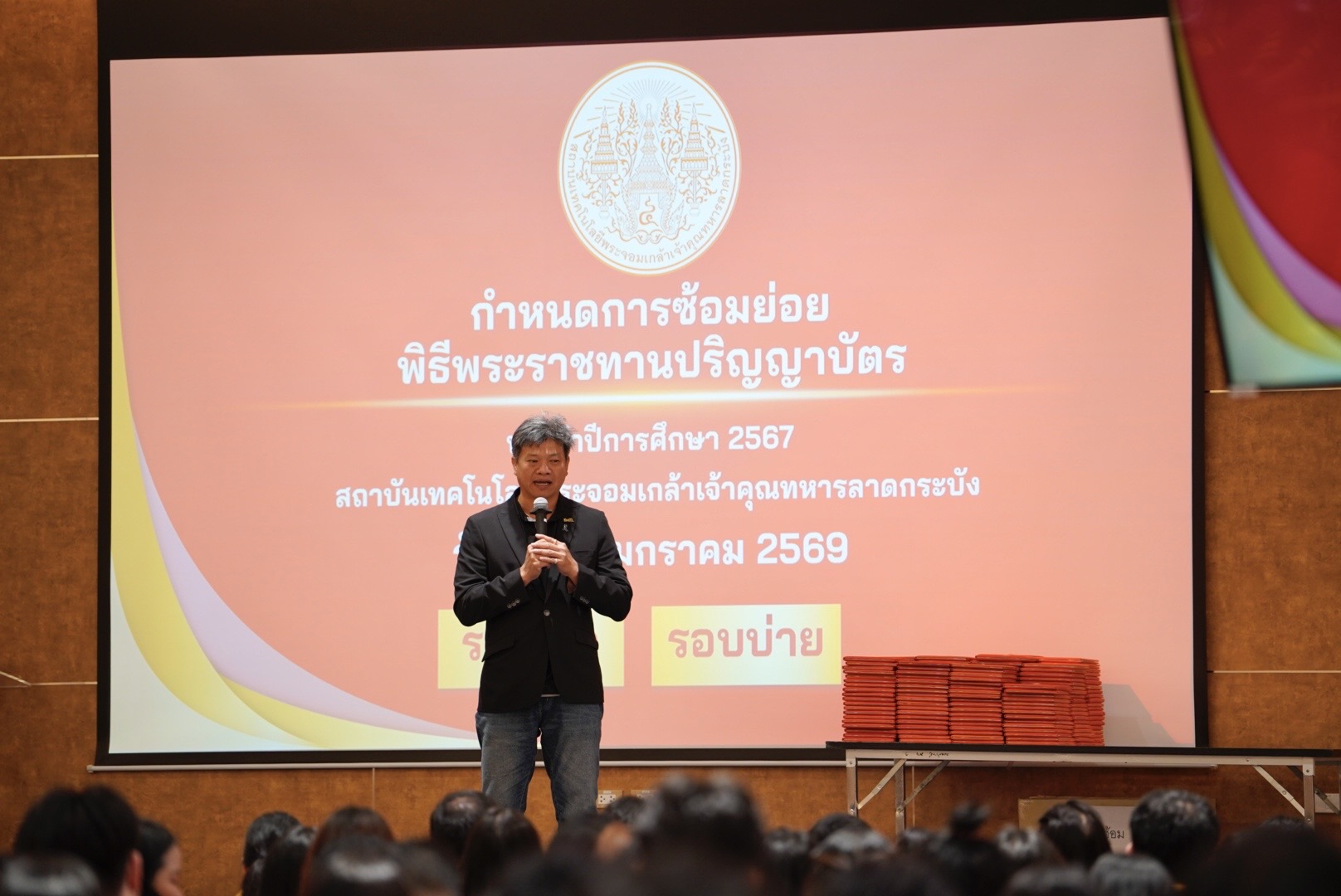 บรรยากาศ #วันซ้อมย่อย พิธีพระราชทานปริญญาบัตร #สถาบันเทคโนโลยีพระจอมเกล้าเจ้าคุณทหารลาดกระบัง ประจำปีการศึกษา 2567 🧡