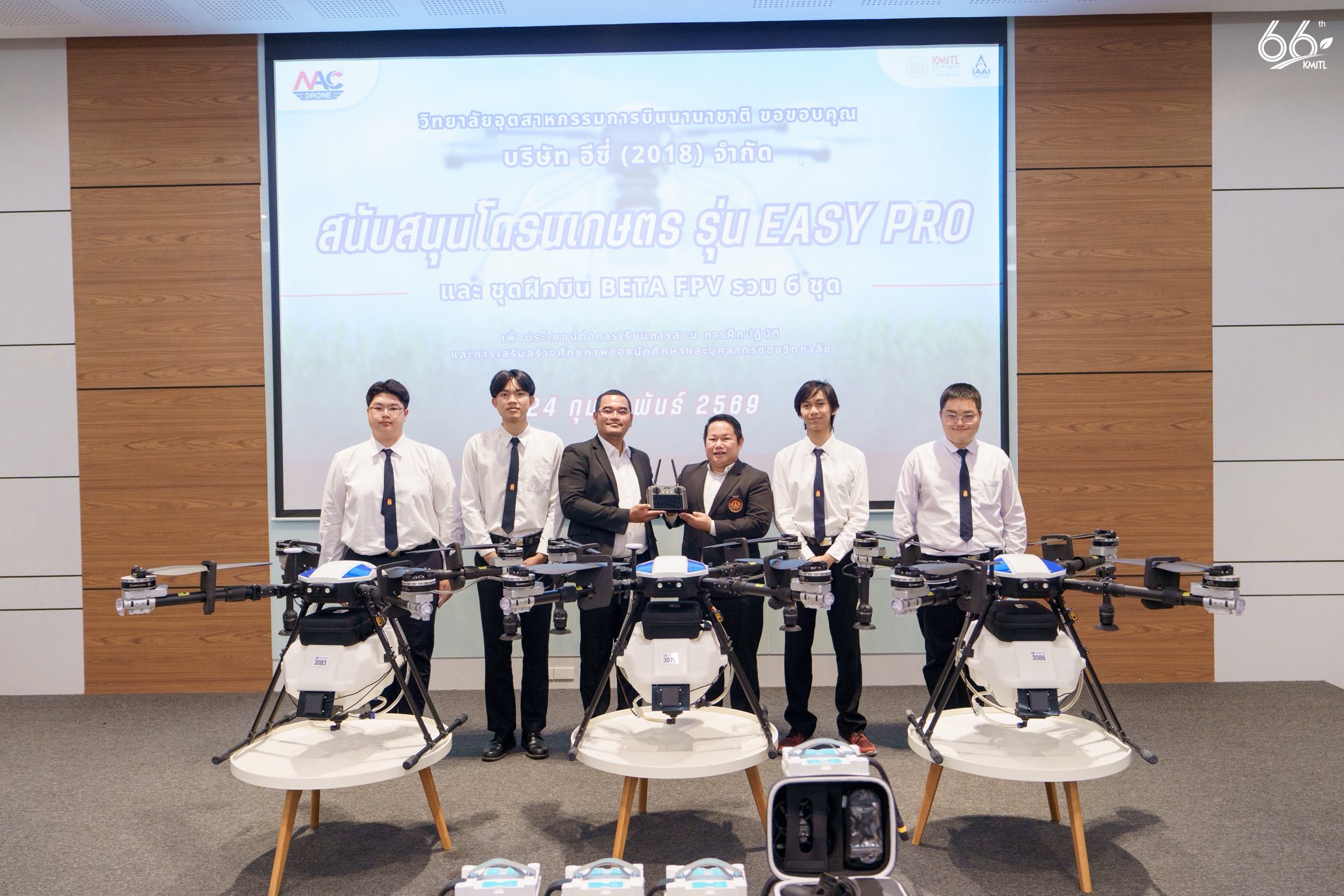 ผศ. ดร.เสริมศักดิ์ อยู่เย็น คณบดีวิทยาลัยอุตสาหกรรมการบินนานาชาติ สจล. (IAAI) รับมอบอากาศยานไร้คนขับ รุ่น Easy Pro และชุดฝึกบิน Beta FPV จำนวน 6 ชุด จาก คุณอัศวิน โรมประเสริฐ ประธานเจ้าหน้าที่บริหาร บริษัท อีซี่ (2018) จำกัด เพื่อสนับสนุนการจัดการเรียนการสอนและเสริมสร้างทักษะด้านเทคโนโลยีอากาศยานไร้คนขับให้แก่นักศึกษา 🧡