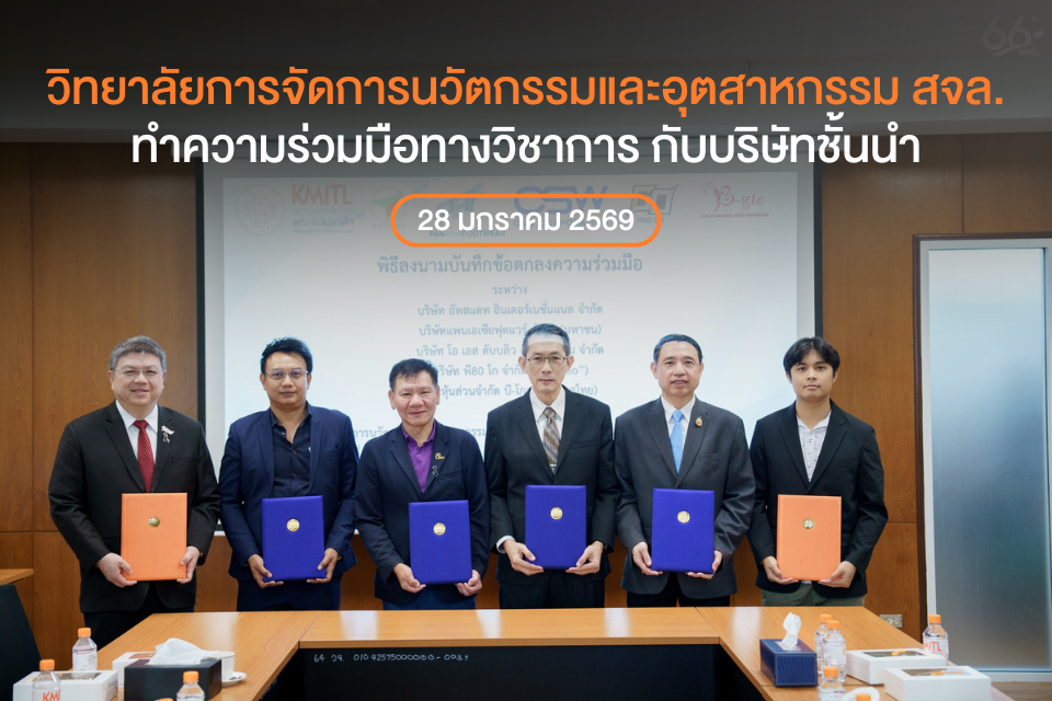 การลงนามความร่วมมือในครั้งนี้มีเป้าหมายเพื่อเสริมสร้างความร่วมมือทางวิชาการ การแลกเปลี่ยนองค์ความรู้ และการพัฒนาศักยภาพด้านนวัตกรรมและอุตสาหกรรมอย่างยั่งยืน ทั้งนี้ ผู้ช่วยศาสตราจารย์ ดร.ทอแสงรัศมี ถีถะแก้ว ผู้ช่วยอธิการบดีฝ่ายสื่อสารองค์กร พร้อมด้วยบุคลากรของวิทยาลัยการจัดการนวัตกรรมและอุตสาหกรรม สจล. ให้การต้อนรับ ณ วิทยาลัยการจัดการนวัตกรรมและอุตสาหกรรม